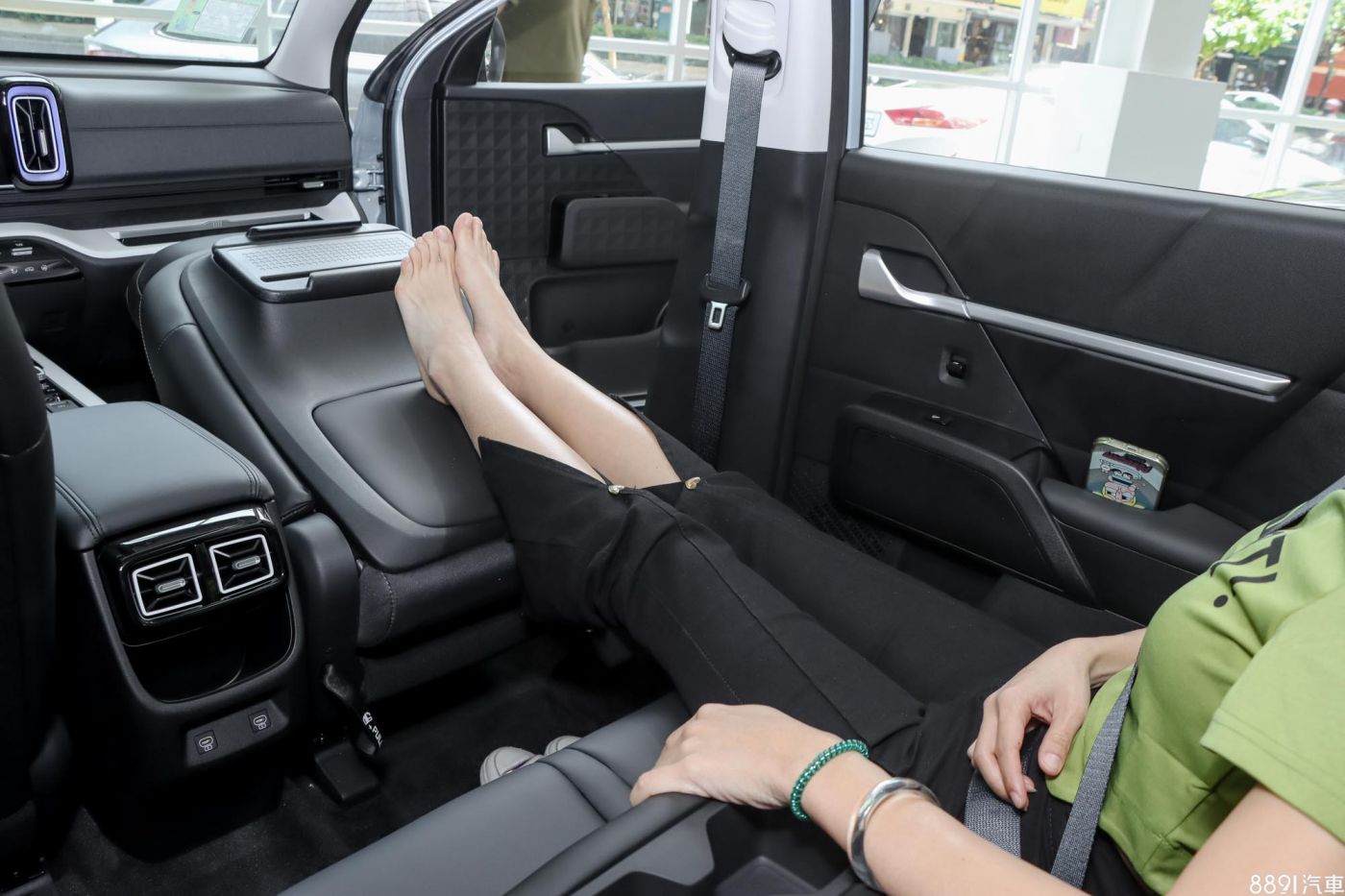 且副駕駛座支援快速前傾倒平,椅背上還有平板夾,倒平後椅背「饋咖」處也設計有軟墊,機能性給讚。