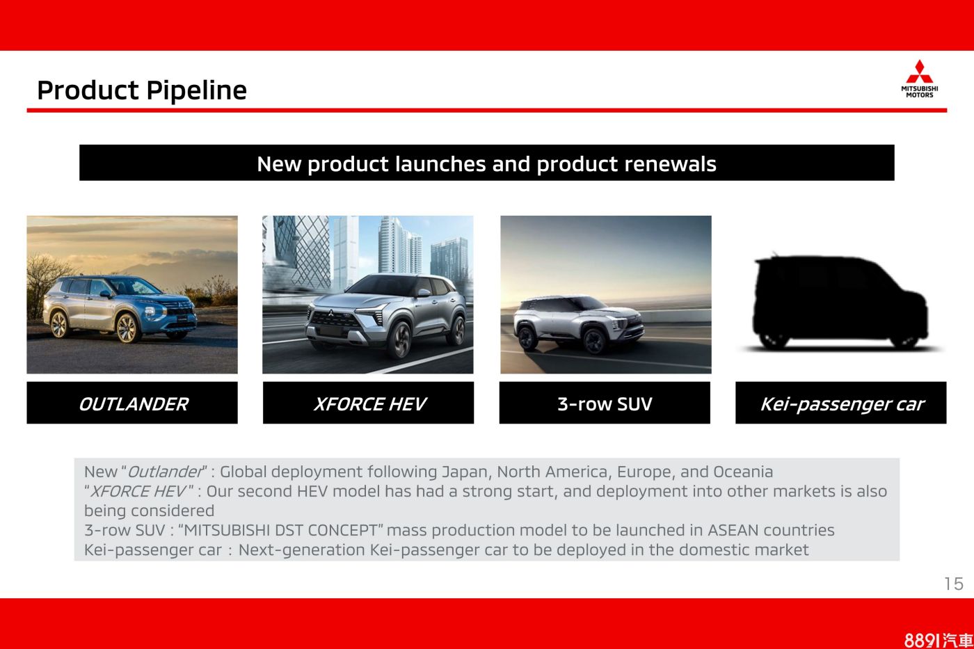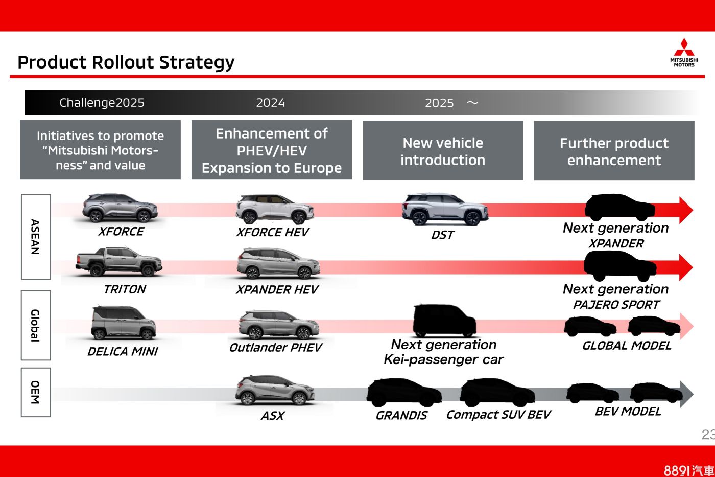 Mitsubishi在日前舉辦的營運發表會上,公開了未來2年內的短期規劃,預計結合自主開發、聯盟合作、OEM代工等模式,計畫在全球各主要市場推出多達10款新車。