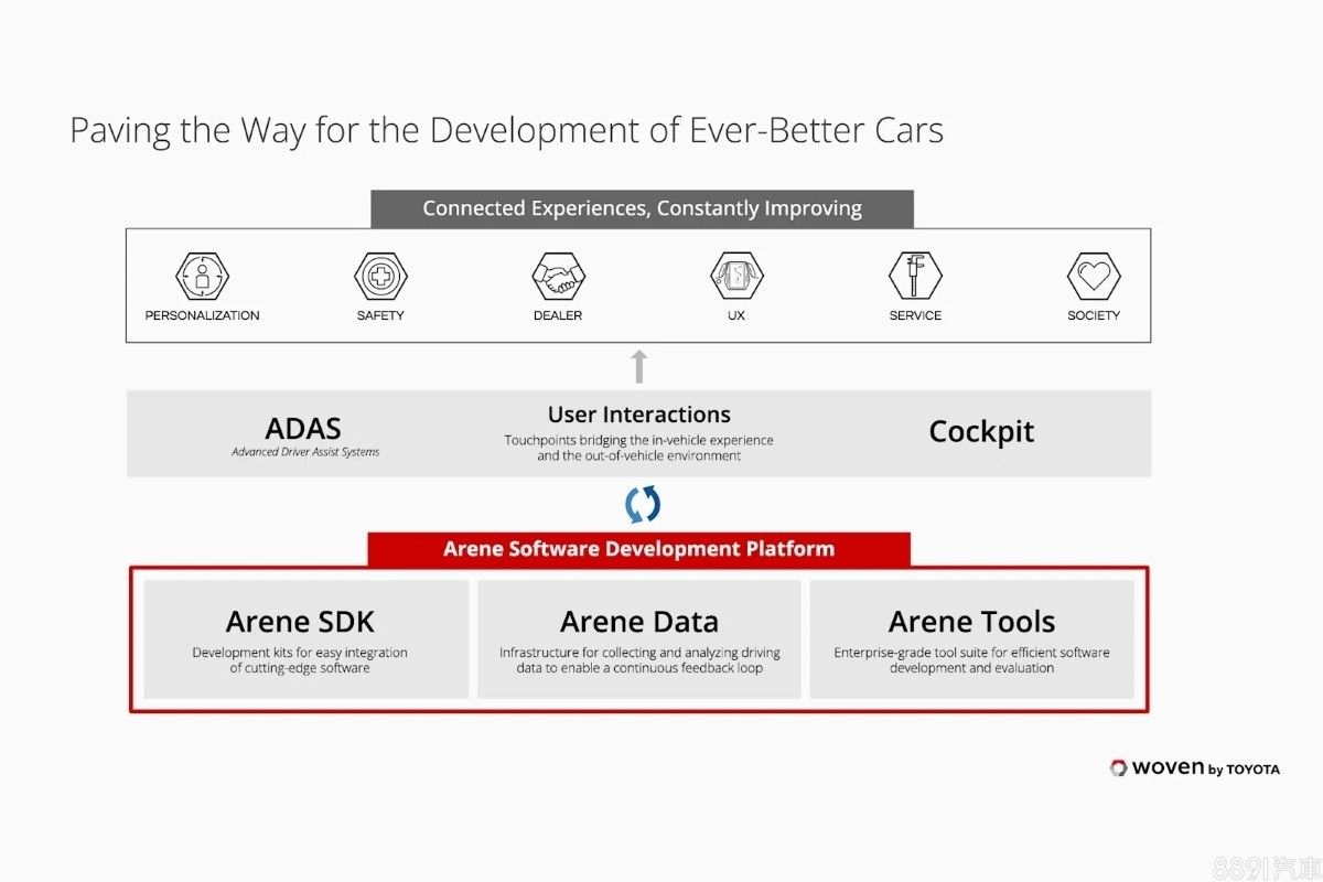 不只是因應多媒體娛樂、車聯網、AI智能服務等便利功能,還為了實現交通零死亡的願景,Toyota旗下子公司Woven開發了全新「Arene」軟體平台,並率先搭載於新一代RAV4,算是豐田邁向智能座艙的第一步。該平台採開放式環境、支援OTA功能,能兼容更多第三方App應用程式,並能確保軟體及TSS駕駛輔助系統持續更新。另外Arene Data也會分析並收集駕駛資訊,成為自動駕駛的發展基礎。
