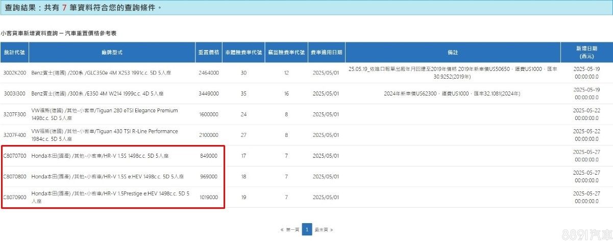 搶在6/3媒體賞車會前,財團法人保險事業發展中心(下稱保發中心),已率先將小改款Honda HR-V登錄在汽車重置價格參考表中,並揭露新車供應汽油與油電雙動力,共劃分「1.5S」、「1.5S e:HEV」、「1.5Prestige e:HEV 」共3車型,重置價格依序為84.9萬、96.9萬、101.9萬。
