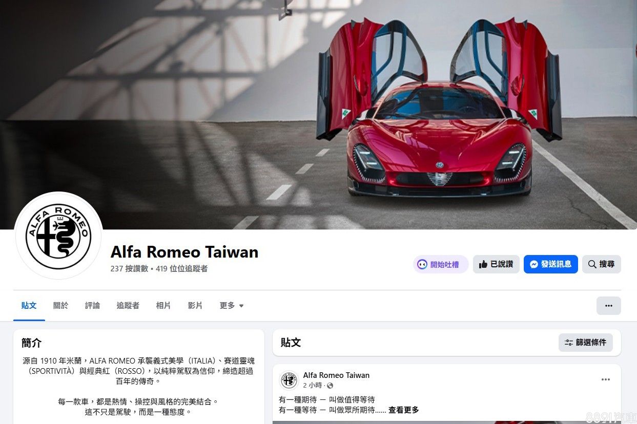 FB粉絲專頁:https://www.facebook.com/AlfaRomeoTW/