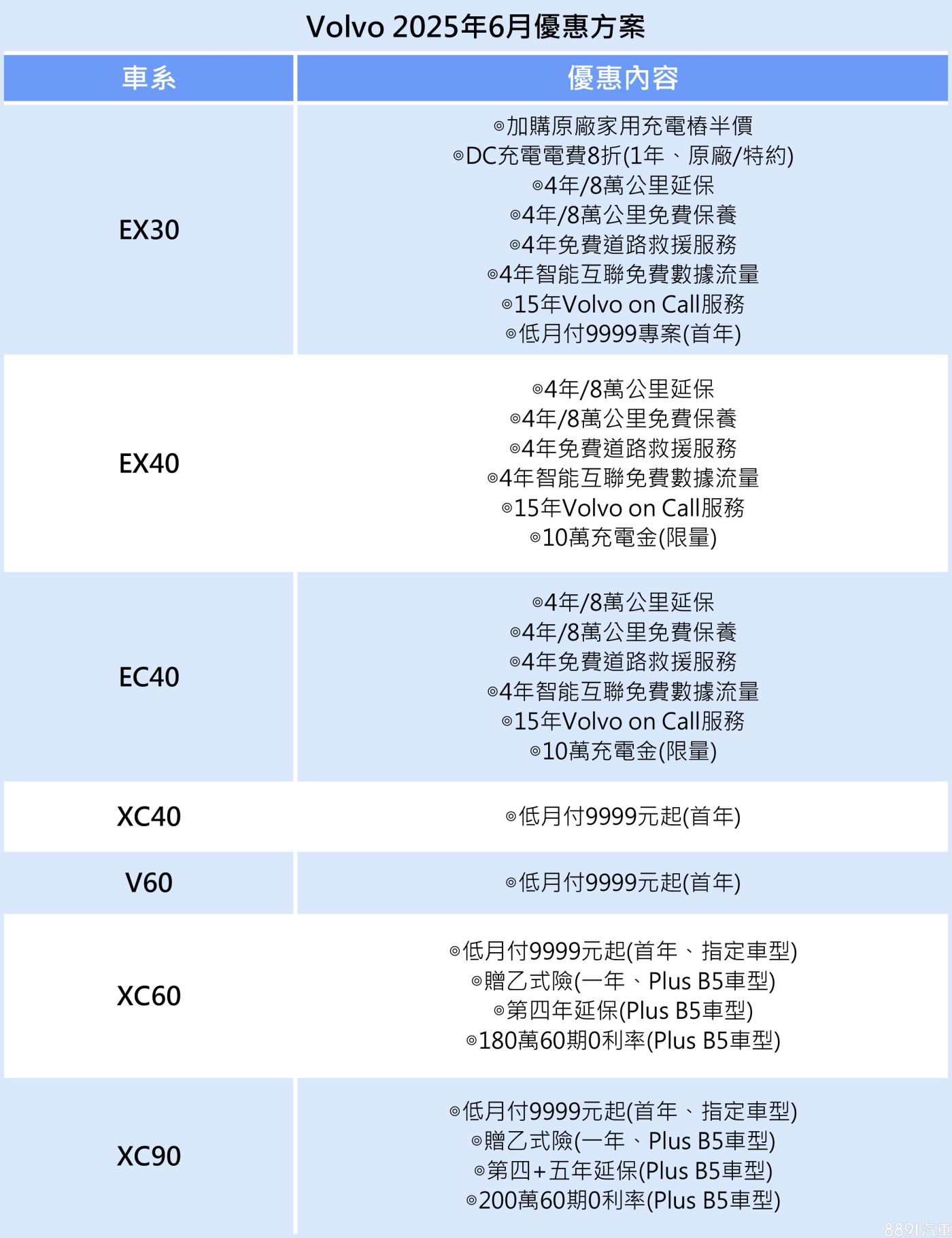 六月Volvo針對旗下純電小休旅EC40/EX40,祭出限量送10萬充電金的好康,同時EV車款再享4年/8萬公里延保與免費保養、4年免費道路救援服務及智能互聯免費數據流量,以及15年Volvo on Call服務。