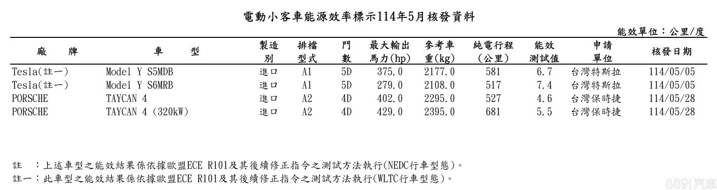 電動車方面,本月核發車款也不多,其中預計6月下旬開始交車的Tesla Model Y小改款,首波供應RWD單馬達後驅與Long Range四驅版,能源署採WLTC測試標準,最大純電里程分別為517km與581km。