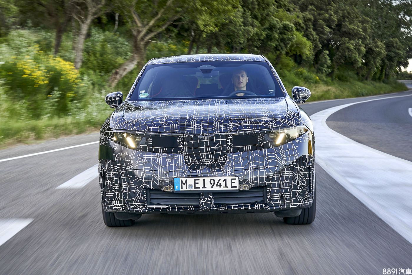 雖然此次iX3測試車仍「包緊緊」,但還是可以看出些許車身細節。首先車頭採用全封閉式設計,搭配下方主動式進氣格柵,招牌的雙腎型飾框,面積對比iX小了許多,個人覺得看起來比較協調,搭配俐落的頭燈輪廓與LED日行燈條。