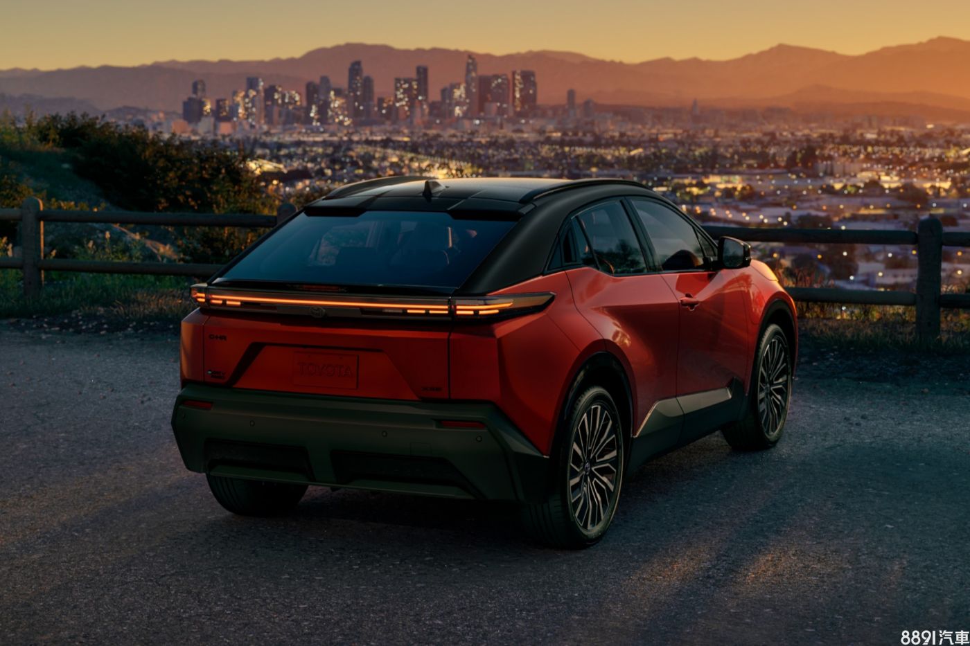 雖然新車佔預覽圖極少比例,甚至還被揚起的沙塵給覆蓋,但似乎可以看到Subaru有意透露車尾細節,經過比對後,發現跟Toyota今年推出的純電C-HR頗為類似,尤其車頂的雙片式擾流尾翼與行李廂蓋上的小鴨尾相當好認,並採用相似的橫貫式燈組設計。(圖為Toyota C-HR)