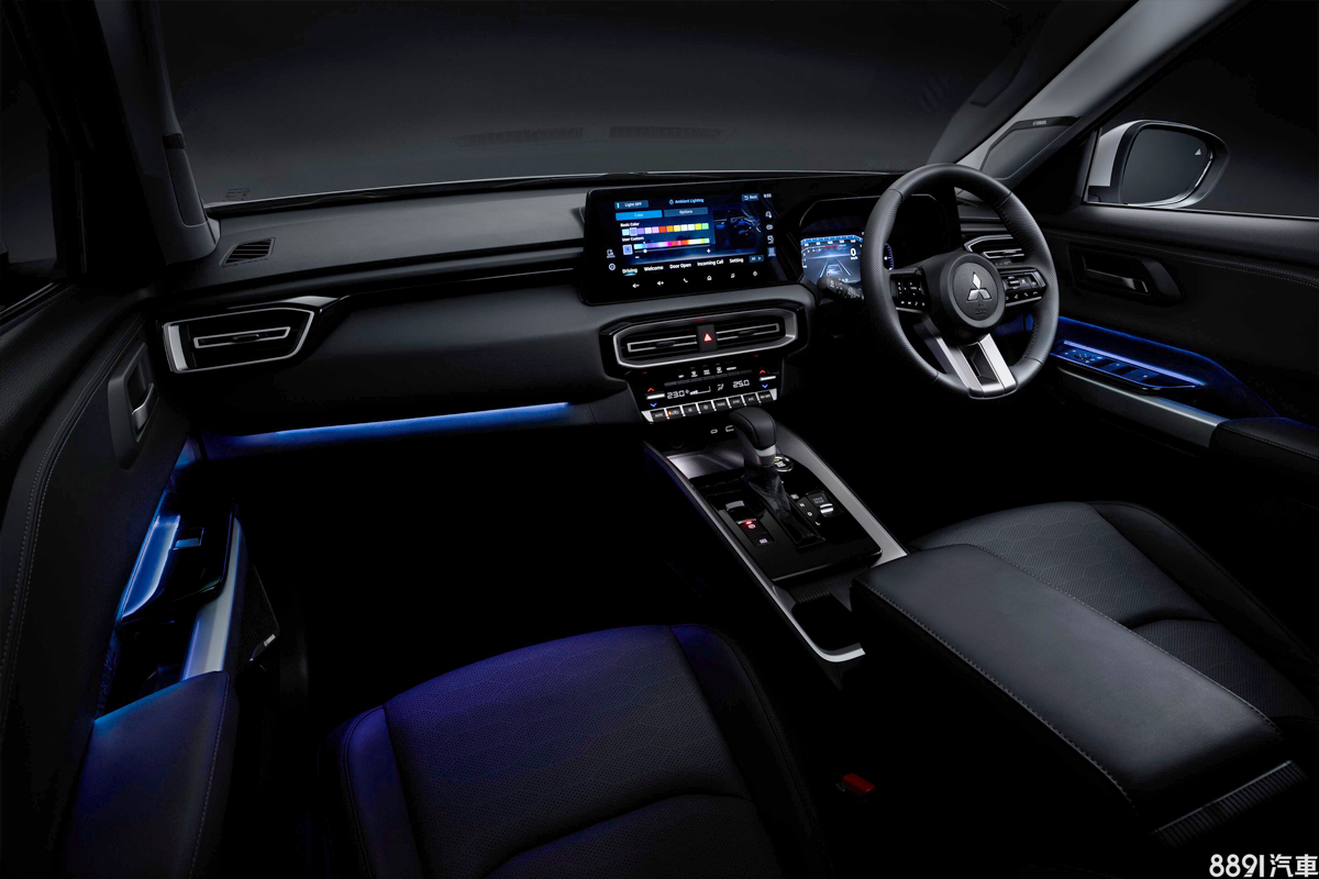 車頭透過整合頭燈的黑色水箱飾板,勾勒出品牌標誌性的「Dynamic Shield」X狀車頭設計意象,而T字形的頭、尾燈組,則是近期廣見於Mitsubishi新車款的設計特徵。