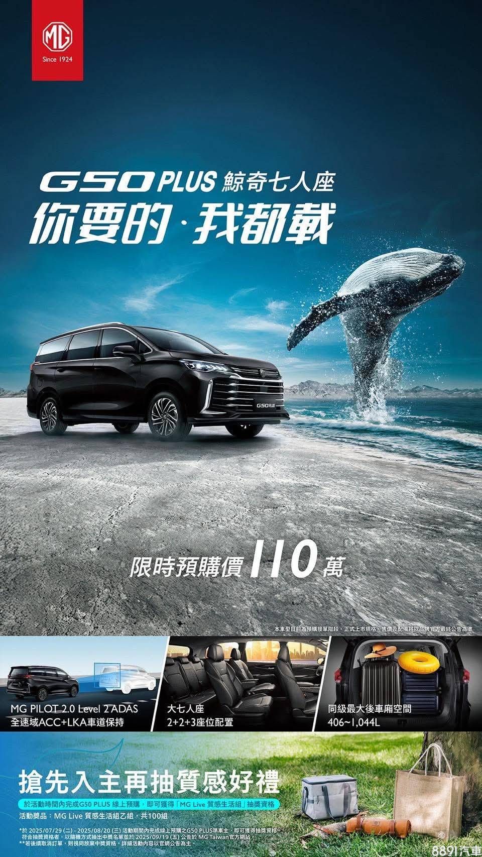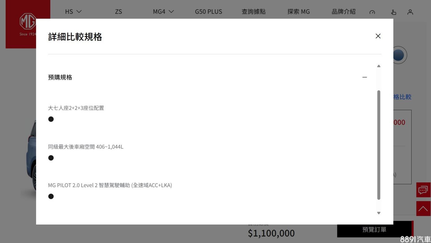 MG Taiwan官網無預警公布G50 Plus開始預購,目前公布「旗艦版」單一車型、接單價110萬,即日起至8/20正式上市前,完成線上預購即有機會獲得MG Live質感生活組。不過目前公布消息有限,正式上市規格、售價及配備請以品牌公告為準。