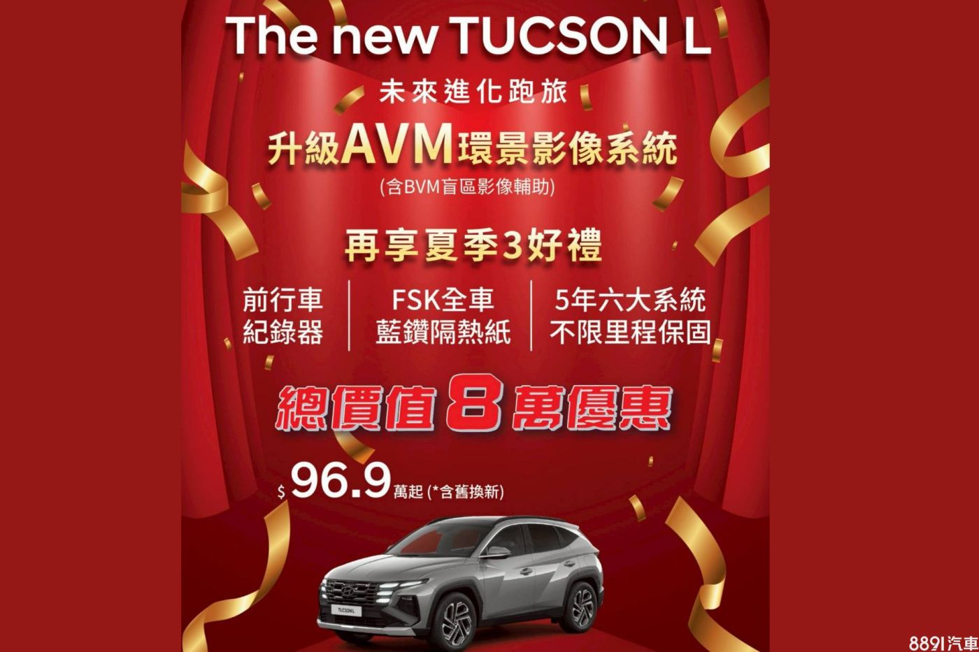 入主Venue和Custin,可享多項實用部件升級,前者贈隔熱紙、電子後視鏡,以及環景;後者則送電子後視鏡、隔熱紙、車門警示燈、引擎護板等。購買Tucson同樣加贈行車紀錄器、隔熱紙,並可選擇升級環景或80萬30期0利率。