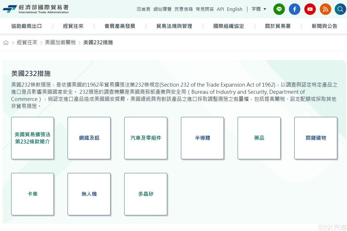 所謂的232條款,是美國貿易擴張法第232條規定,涵蓋項目包含半導體、藥品、汽車及零組件等等,倘若認定進口產品造成美國國安威脅,就有可能對該產品之進口行使裁量權,包括提高關稅、設定配額或採取其他非貿易措施。