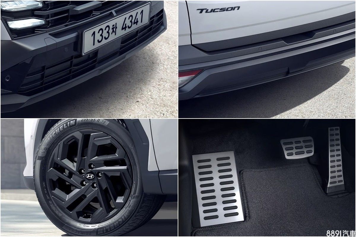Tucson同樣也有提供黑色外觀套件可選,除了前後保桿、後視鏡蓋、窗框飾條、金屬踏板全面塗黑處理外,還搭配專屬幾何造型19吋亮黑鋁圈,為動感氛圍加分不少。