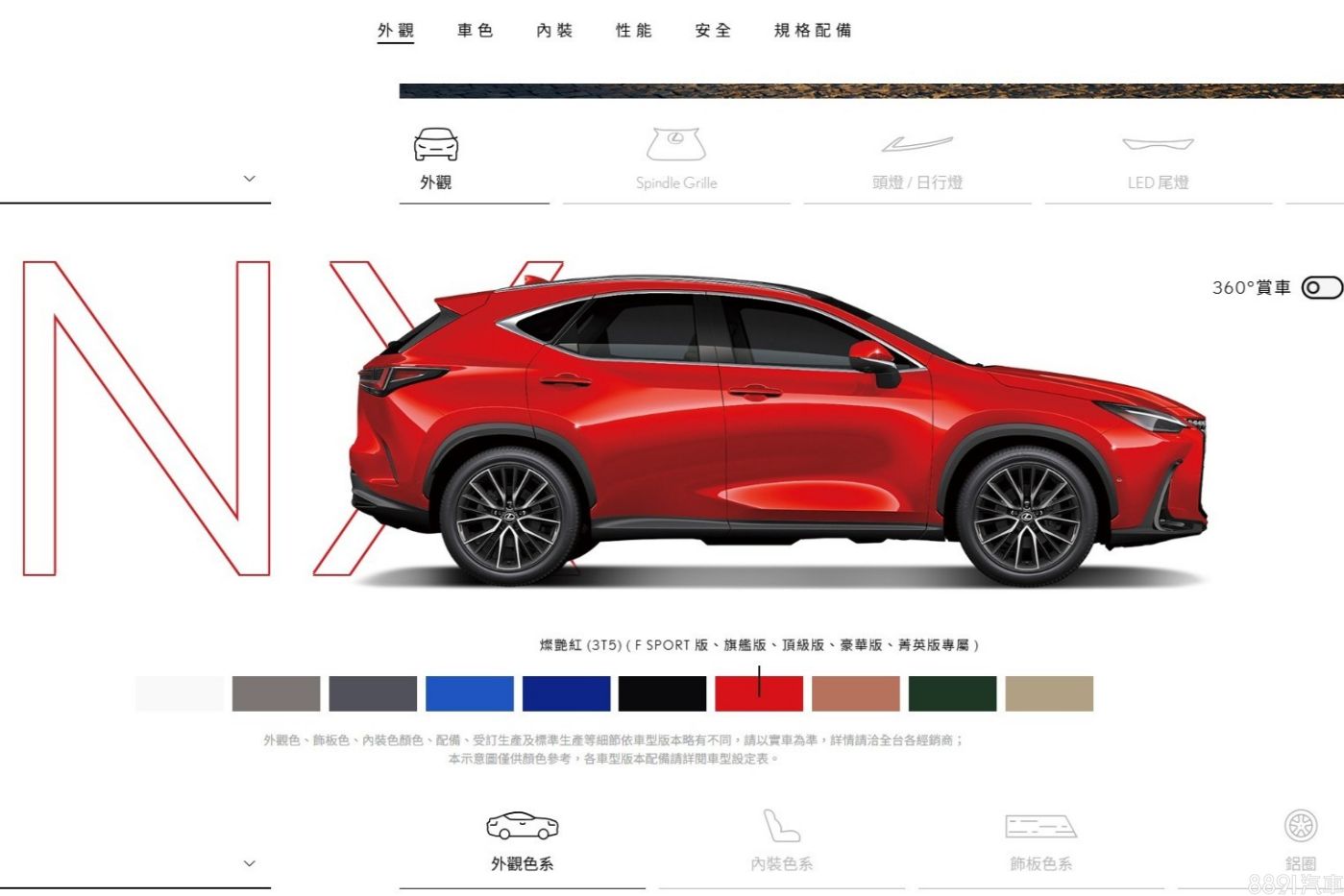 新年式NX外鈑色一口氣砍掉「爵色黑」、「霓光紅」、「極光白」3款,不過車色上有作調整,原本F Sport版才能選的LFA白,現在供應全車系,也新增「燦艷紅」作為紅色的替代方案,除了Overtrail版沒得選之外,其餘版本皆適用。