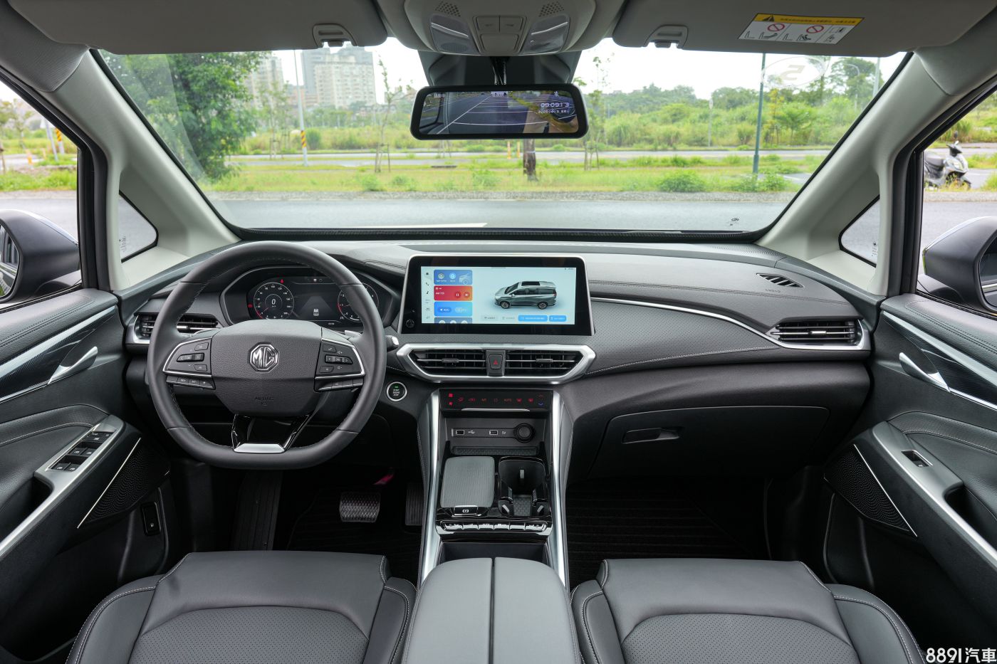 車內為「2+2+3」七人座配置,全車均為皮質座椅,採海灣式座艙格局,搭配懸浮式觸控螢幕,排檔桿整合在方向機上,配備電子手煞車+Auto Hold,中船十分開闊,得以騰出來做其餘規劃。配備有12.3吋數位儀錶、12.3吋多媒體車機、單區恆溫空調+後排出風口、64色氣氛燈、手機無線充電、電子後視鏡暨行車紀錄器、360度環景、雙前座電調/加熱功能。