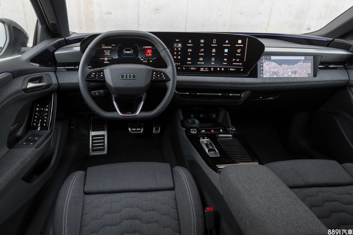 座艙導入最新E3 1.2電子架構與Audi Digital Stage人機介面,標配11.9吋OLED數位儀錶、14.5吋中央觸控OLED與10.9吋副駕螢幕,整合原廠導航、Apple CarPlay與Android Automotive OS,支援雲端服務與更新。