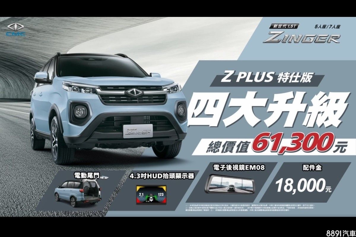 舊換新優惠還不夠?中華汽車加碼推出Zinger Z Plus全新特仕版,5人座/7人座皆有供應,消費者加價2萬,即可限時(9月底前入主)升級電動尾門、4.3吋HUD抬頭顯示器、電子後視鏡EM08等3大配備,再加送1.8萬元配件金,原廠稱四大升級總價值達61300元。