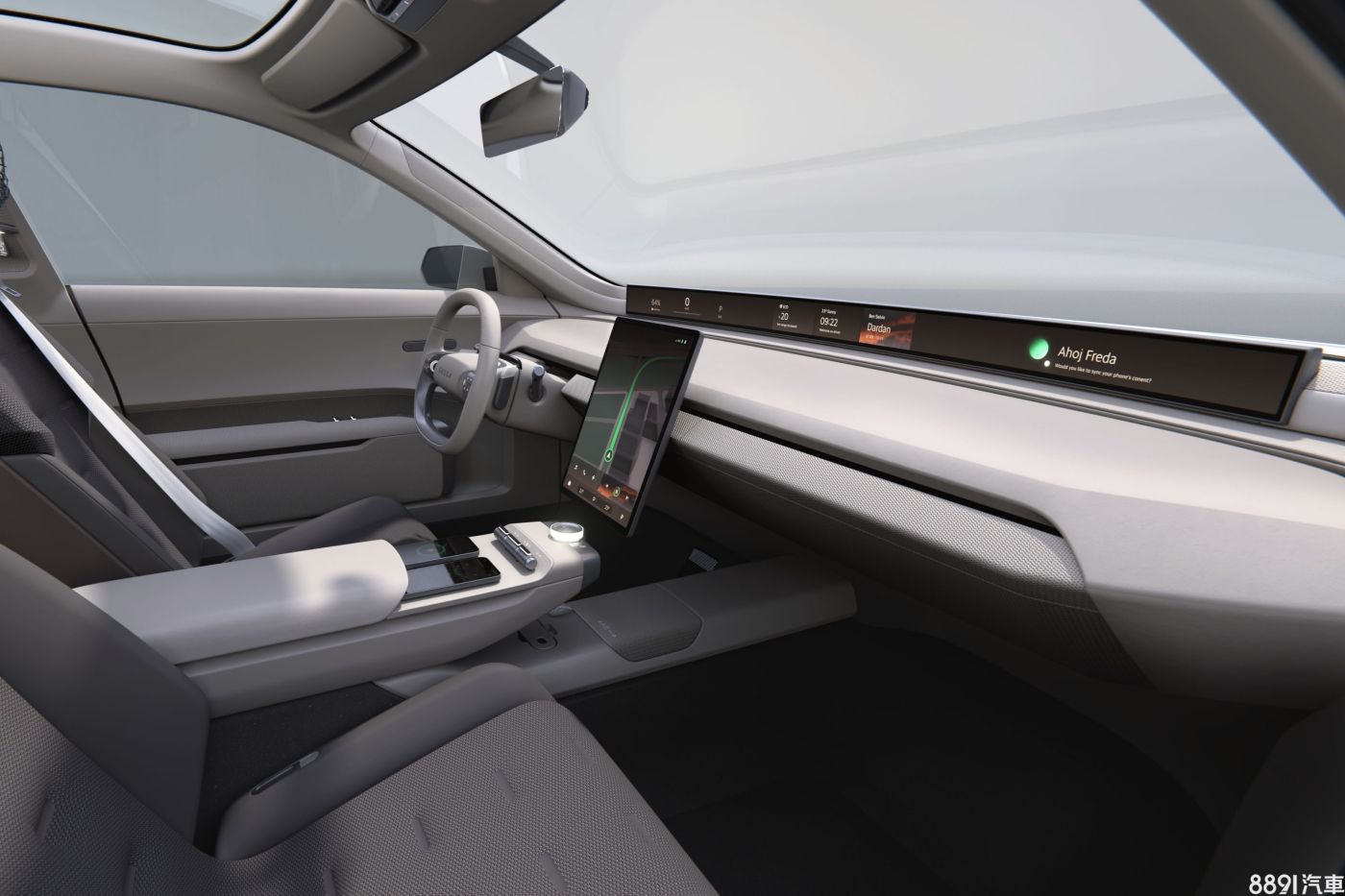 內裝走極簡風,以簡單的水平線條呈現,重點放在人與車的直覺互動。儀錶臺直接嵌入一個橫跨1.2公尺的Horizon Display全景螢幕,搭配直立式觸控多媒體與旋鈕操作,內建新世代AI助理以及高度成熟的自動駕駛技術。