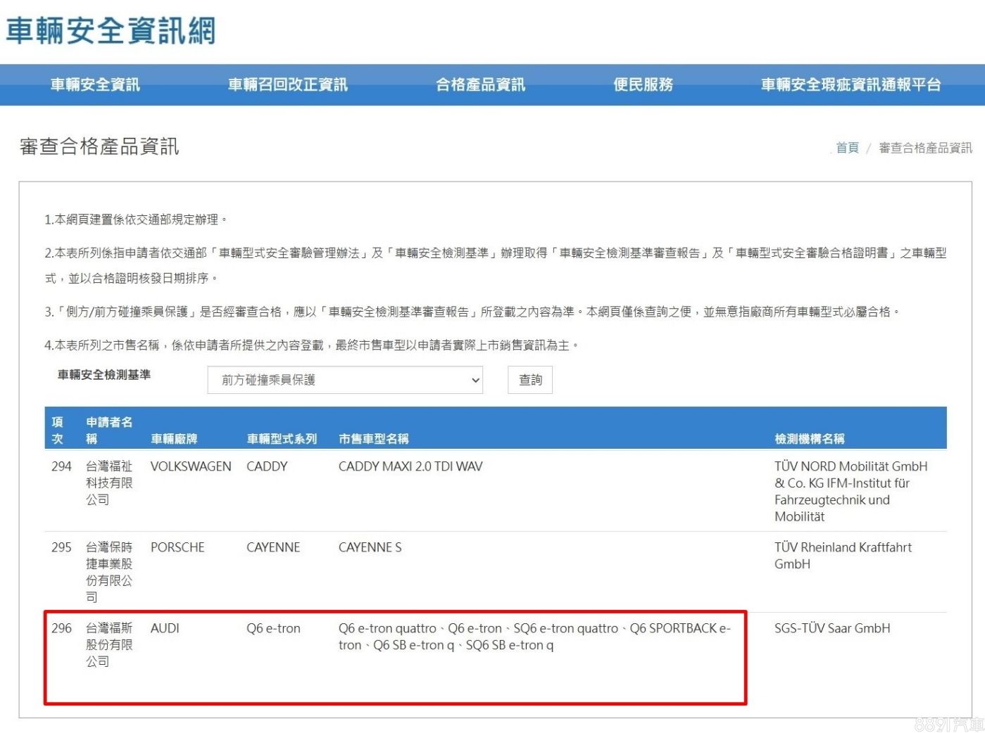 台灣奧迪今年3月底在台發表全新休旅車系「Q6 e-tron」,包含性能頂規SQ6 e-tron也一併登台,當時已有預告Sportback版本因海外較晚發表,國內會稍晚報到。而近日查詢車安網審查合格產品資訊,發現Q6 Sportback e-tron已經完成登錄,待取得能源署耗能證明核發資料後,或許就會正式上市了!