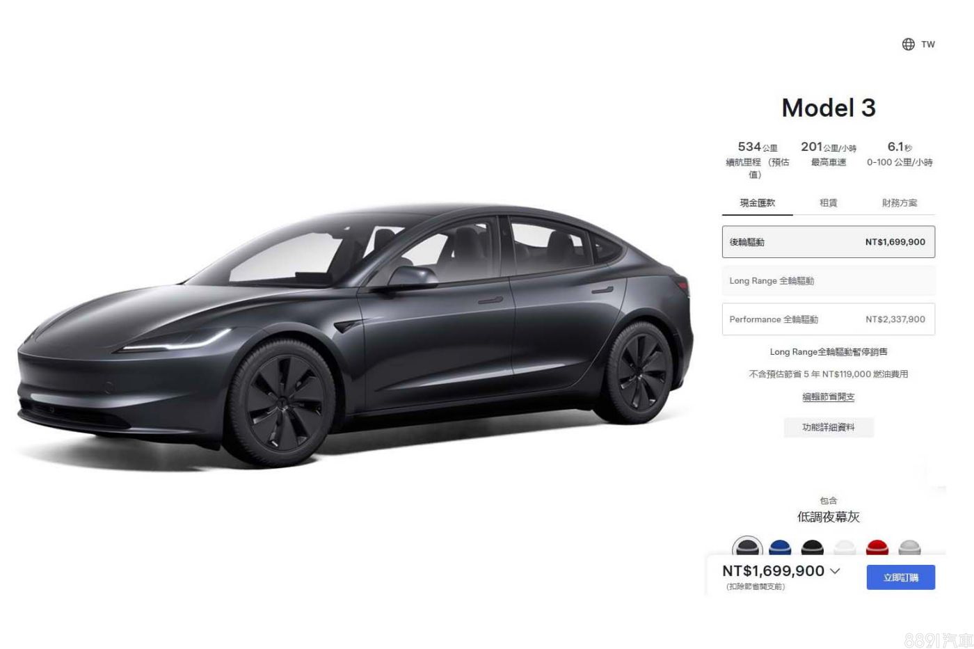 小改款Model 3這回帶來的產品更新,首先編成部分,國內暫時停止Long Range全輪驅動版本的訂購,後輪驅動和Performace全輪驅動車型,售價維持169.99、233.79萬元。