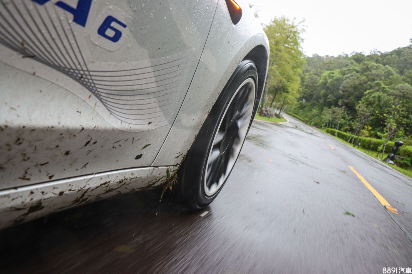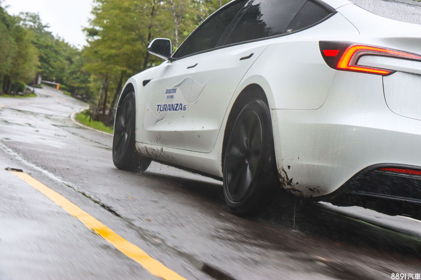 所幸這次活動移動距離夠長,可以好好體驗Turanza 6的靜音表現。這代Tesla Model 3本身靜肅性就很不錯,風切聲不明顯,在暴雨狀態下車室也是寧靜,這樣的條件下更能凸顯胎款優劣。體驗上除了積水打上輪拱,能夠明顯察覺噪音之外,以60~70km在雨天106山路巡航,噪音皆抑制良好,即便是高速公路行經較粗糙的路面,傳到車內也僅有輕微低頻共鳴,驗證了這組花紋在降噪,甚至是排水性上都有高標準演出。