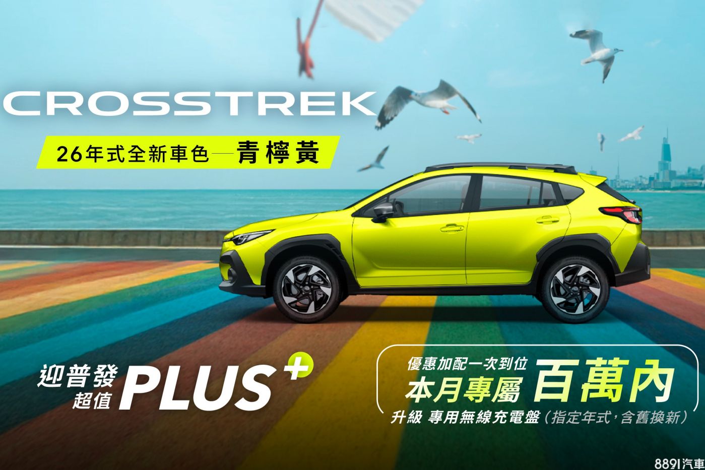 Subaru公布26年式Crosstrek開始接單,維持單一車型、114.8萬元,增配EDSS駕駛異常自動煞停系統,當駕駛因身體不適或突然失去意識時,EDSS會自動偵測駕駛異常並作動、將車輛減速停下,且自動開啟警示燈提醒周遭用路人或車輛,讓安全更上一層樓,另推出「青檸黃」、「沙丘金」新車色。凡於本月訂車即贈「SANGEAN多功能戶外收音機」限量訂車禮。