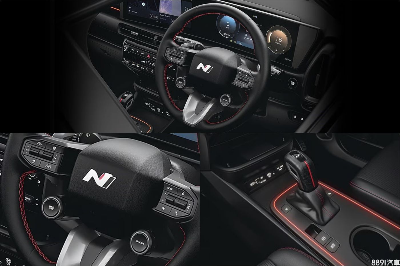 車內延續標準版雙12.3吋曲面螢幕的布局,換上N Line專屬方向盤,除了配備有換檔撥片外,還整合行車模式快捷鍵,提高操駕自主性,車內也可見紅色縫線、紅光氣氛燈、金屬踏板、運動化座椅等等妝點,熱血氛圍可沒少。