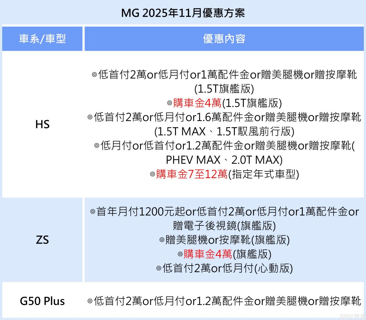 荷包君免驚!11月MG HS最高享12萬購車金、還有輕鬆貸+美腿按摩機