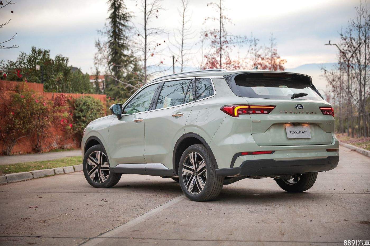 車尾設計倒是十分簡潔,甚至跟Kuga還有幾分神似。採用倒L型的尾燈輪廓、尾門中央可見Territory字標。