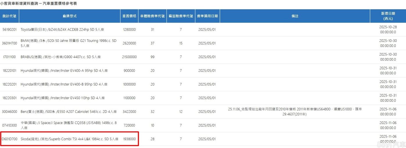 Skoda Superb Combi目前在國內供應「1.5 TSI e-TEC」、「2.0 TSI Sportline」、「2.0 TSI 4×4 SportPlus」三車型,不過近日查詢財團法人保險事業發展中心(下稱保發中心),發現名單上出現「2.0 TSI 4×4 L&K」的新車型,或許意味著跟Sedan房車版一樣,也將導入主打豪華的頂規車型!