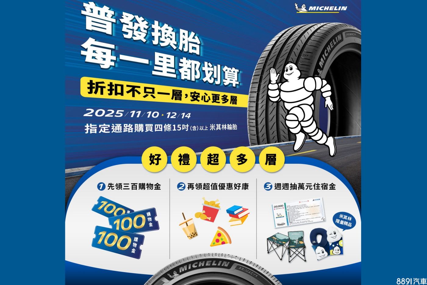 為了讓普發紅包花得更有感,自2025年11/10至12/14止,凡於全台馳加與米其林輪胎中心購買四條15吋(含)以上米其林輪胎,並完成LINE官方帳號登錄,即可獲得「生活享樂金」,包含現領300元電子商品禮券,以及多重通路的超值優惠好康。