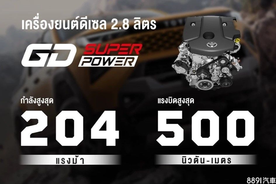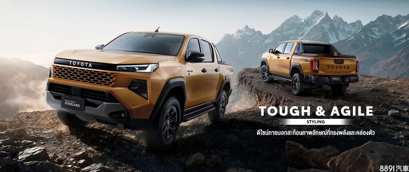 新一代Hilux維持大樑底盤IMV平臺,但針對車身剛性、懸吊系統進行優化。燃油車型方面,新Hilux沿用既有2.8升四缸柴油渦輪引擎,具備204hp/51.0kgm最大輸出,部分市場視環保法規需求,另搭載48V輕油電系統,可額外提供11hp/6.6kgm推力,傳動搭配6速自排變速箱與分時四驅系統。