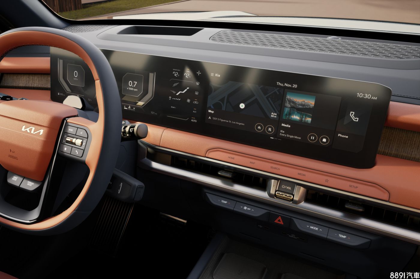 雖然新聞稿並未提及數位座艙配置,但拉近看會發現這個一體式螢幕與EV9類似,雙12.3吋數位儀錶與多媒體系統,中間再搭配一具5吋空調觸控螢幕。