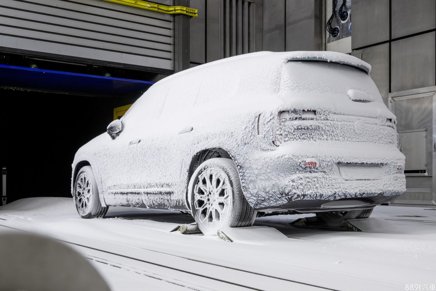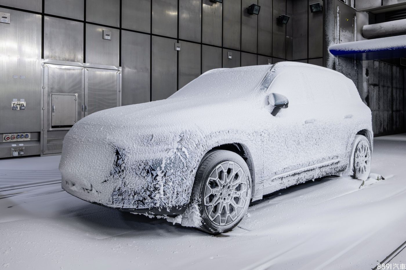 M.Benz近日公布新世代GLB資訊,率先亮相的是純電版,如圖所示,車輛已在風洞實驗室執行冬季測試,模擬攝氏零下40度及暴風雪的極端環境下,仍能安全無虞的行駛。不過可惜的是,廠照中新GLB完全被白雪給覆蓋,外觀難以辨別,大概只有花瓣狀鋁圈看得夠清楚。