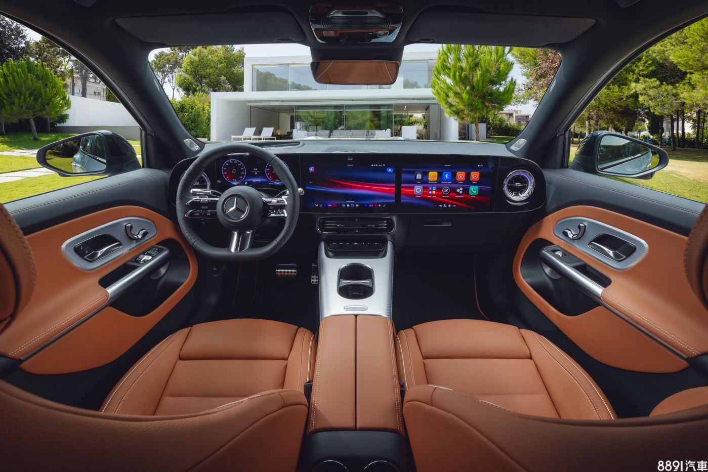 此回公布的資訊,最完整揭露的就是內裝鋪陳,可以看到新一代GLB幾乎照搬CLA的座艙設計,採用螢幕相連一起的簡潔布局,雖然官方沒有提到螢幕尺吋,但預期會標配10.25吋數位儀錶+14吋中控螢幕,另提供MBUX Superscreen的「三螢幕」選配,讓前排乘客也可以享有一具14吋娛樂螢幕。