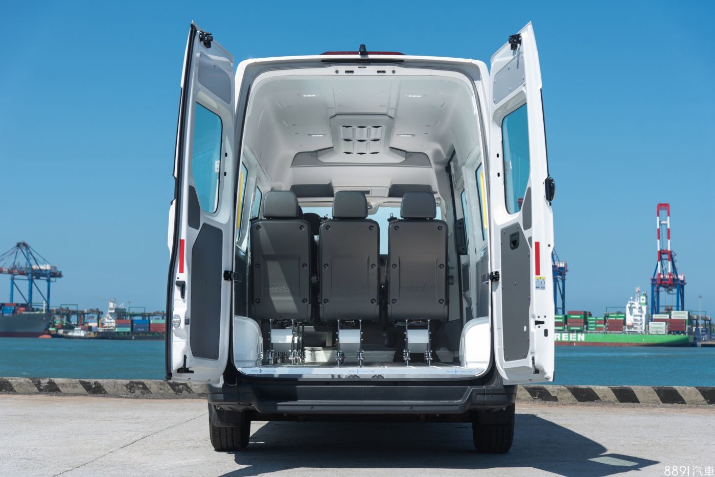 車長達6836mm的Crafter,擁有挑高且寬敞的座艙設計,並採用7張單人獨立乘客座椅,以及鋁合金無段式滑軌地板,可依不同使用情境靈活調整座椅位置與行李廂空間。移除座椅後,後艙更可釋放出長4051mm、寬1832 mm、高1961 mm 的超大裝載空間,兼顧乘坐與多用途機能。