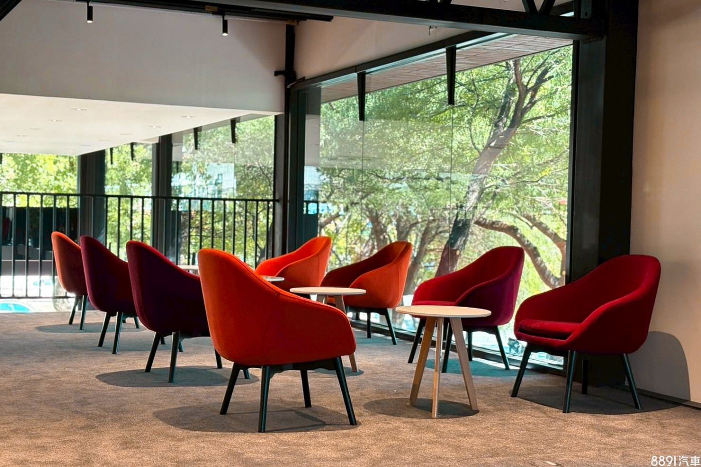 展示中心以法式優雅結合自然元素打造,建物外觀採大面積玻璃引入自然光線,樹影光影層疊,使室內呈現明亮、開放且富生命力的視覺表現。展示空間以流暢動線搭配新世代品牌識別,讓來訪者在綠意、光影與法式美學之間自在穿梭;從開闊展示區到沉穩休憩空間,每一處細節皆以細膩設計語彙鋪陳。