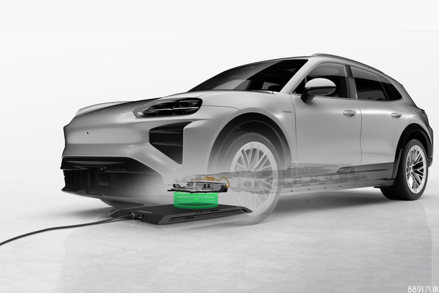 純電Cayenne導入、Porsche首度提供選配的無線充電系統,讓車主只要把愛車停入車庫,就會自動開始充電。如此便利的技術,原廠首先要讓電動車在合理時間內完成充電,採用能量轉換步驟最少、最穩定的架構。Porsche車輛感應充電系統能讓市電的交流電(AC)在充電板中轉換成直流電(DC),再轉換成85 kHz、2000 V的高頻交流電,供震盪電路使用,比美國60 Hz或歐洲50 Hz的市電頻率高出上千倍,讓能量得以有效傳輸。且系統會持續偵測偏移狀況並自動調校,容許最大誤差可達10公分。