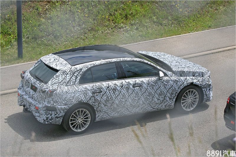 測試車使用大量膠帶設下防護關卡,引擎蓋上還附加了一層偽裝鈑件,但從曝光照中還是可以察覺,新一代A-Class的車身尺寸放大了一些,最明顯之處在於軸距即車室空間的增加,C柱變得更加粗壯,仔細看似乎加入一片側窗,成為近似Audi A3 Sportback的設計,而車頭進氣壩似乎也被加大,頭燈組自然也有全新設計。
