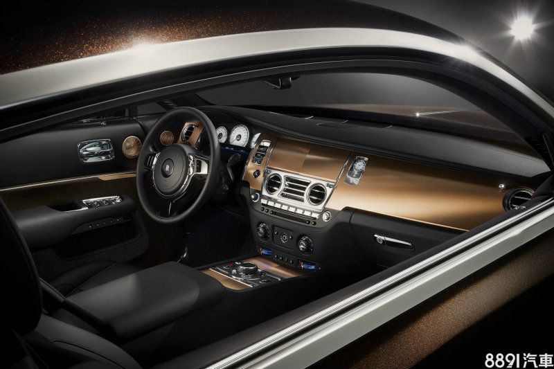 抒情銅(Lyrical Copper)金屬色外漆,經拉絲和拋光工藝混合處理後,優雅地呈現出當今最頂級音響系統上銅質材料的獨特工藝。打開Wraith的車門,注意力便立即被揚聲器格柵所吸引,該格柵以黃銅為主題,經全新設計,並刻有“Bespoke Audio(定制音響)”字樣。車門儲物空間和地毯由精細的皮質織物精心編製而成,進一步增強車內空間的質感深度。