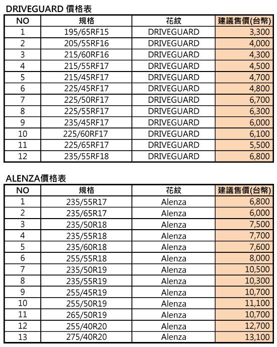專為頂級SUV量身設計旗艦輪胎,此款ALENZA具備頂級舒適與靜肅性、提升濕地性能(操控+煞車)、優越的磨耗壽命三大特點。由於新花紋與配方的改良,新花紋及膠料能平衡輪胎和道路的接觸面,減少振動,進而減低輪胎噪音。