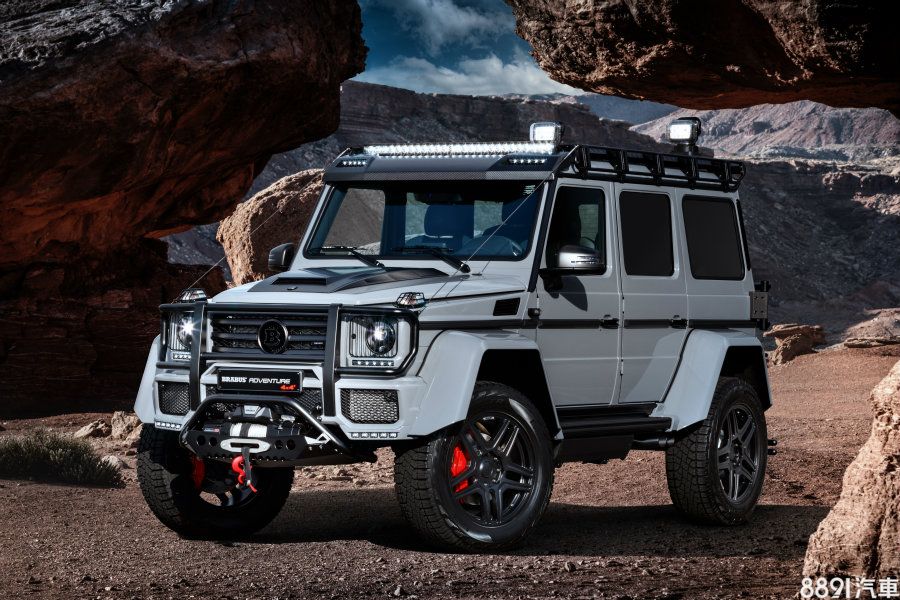 「550 Adventure 4x4²」是Brabus以G 500 4x4²為基礎,下手改裝而成的「越野猛獸」,第一眼望去,根本只有「重裝上陣」四字可形容,引擎蓋上的打孔設計、頭燈與方向燈罩、水箱護罩柵格予以消光黑塗裝、車頭的防撞桿、保險桿前方配置保護桿與拖車勾,並換上新式樣護板,最顯眼之處,莫過於全車大量的照明裝置,車頂配置一排LED燈組,及兩支探照燈,前保桿兩側下方也有LED燈組,如此種種,塑造出「進攻意味」十足的面容。