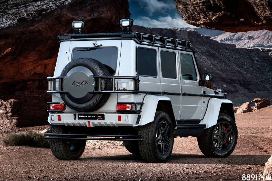 輪拱使用與車身同色塗裝,車側踏板改採兩段式設計,車尾加裝防撞桿、備胎及尾燈罩,並全數予以消光黑塗裝,此外,Brabus也為其換裝自家的排氣系統,並可調整聲浪,尾飾管以黑色鍍鉻材質妝點,讓車尾整體能呼應車頭的霸氣風格。