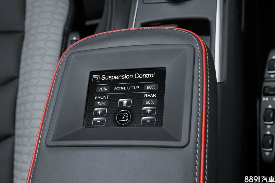 為了匹配獲得強化的性能,Brabus為其換上自家的可調式電子懸吊系統,此系統使用鋁合金打造而成,具有輕量化且更佳的散熱效能等優點,可藉由前座中央扶手的面板單獨調整前後軸,並有個人化、Sport、舒適、Off Road四種模式可選。