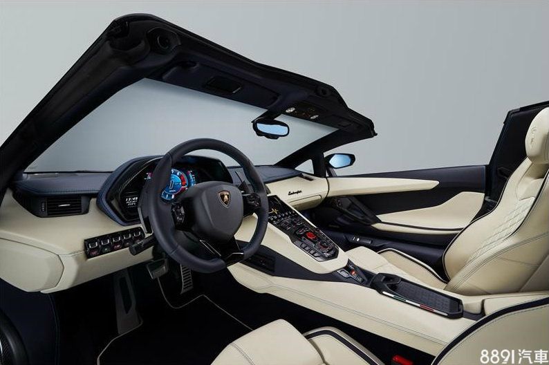 Aventador S Roadster的車室設計也與Aventador S 差不多,中控台配備TFT觸控螢幕,可操作影音娛樂、與Apple CarPlay做連結;數位儀表板可顯示行車資訊以及駕駛模式。