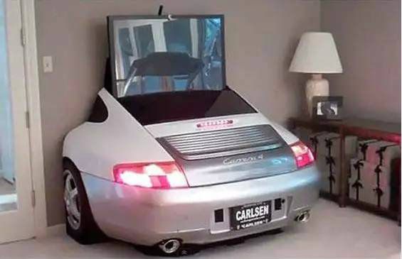 Porsche的屁屁也拿來做電視櫃,不知道會不會看著看著電視突然就想開走!