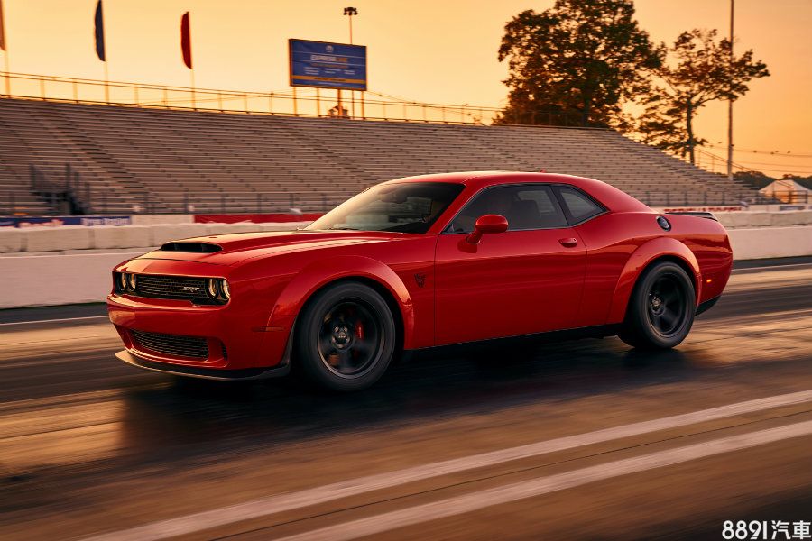 談到加速性,怎能不提到Dodge Challenger SRT Demon,其搭載的6.2升V8機械增壓心臟,最大輸出達840hp/106.5kgm,且能在2.3秒完成0~100km/h,以9.65秒達成0~400m加速,末速為225 km/h。