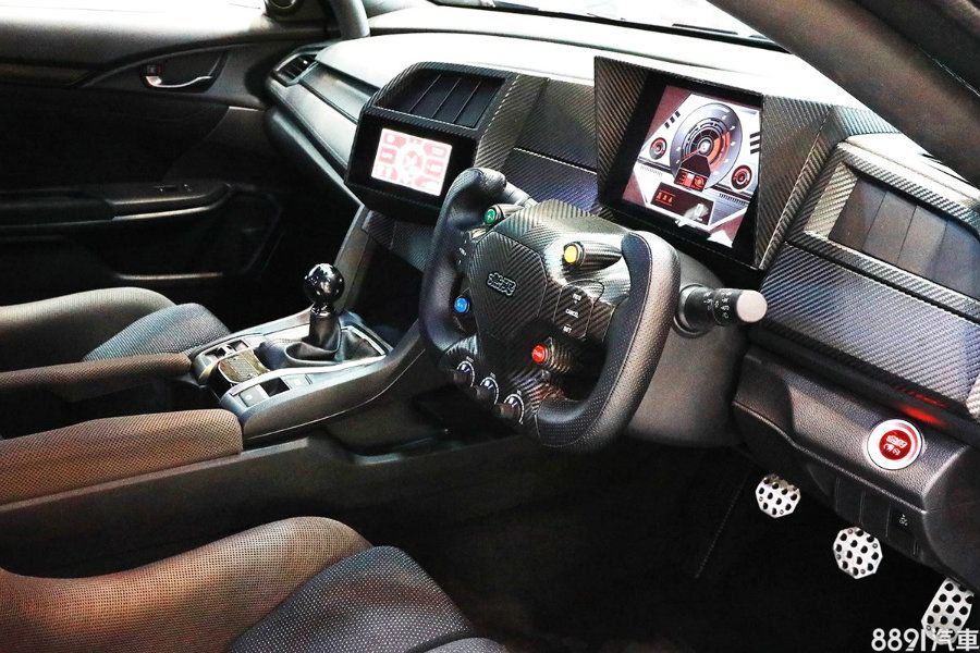 內裝部分,利用大量碳纖維飾板妝點質感,為彰顯競速特質,方向盤也改為賽車專用款式,此外,儀錶板則改以液晶數位顯示。
