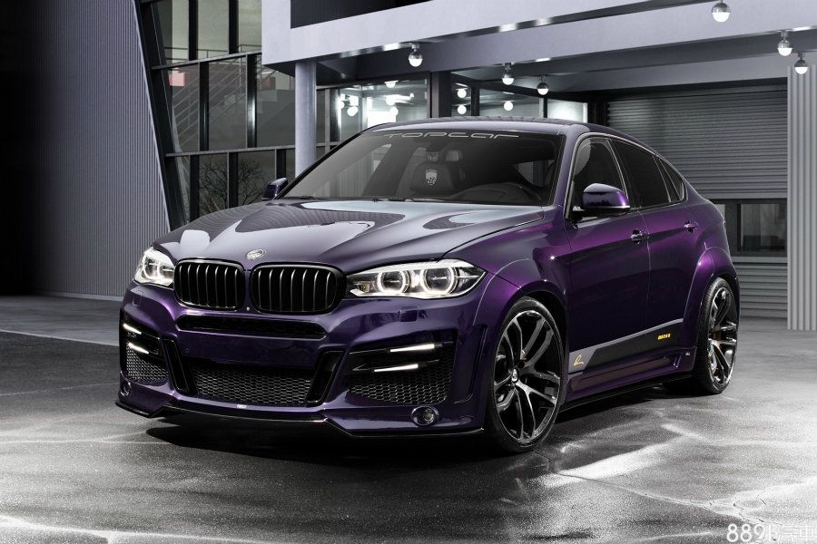 輪圈同採Lumma出品的22吋雙肋五輻款,但在寬車體輪拱的搭配下,比例竟反倒顯得嬌小。TopCar X6採紫色車身搭配黃色卡鉗,兩色的搭配意外契合NBA湖人隊隊色風格,採用的Amethyst紫水晶塗裝更是Porsche廠色之一。TopCar雖未公佈內裝照,但該款X6換上同樣源自Lumma的金屬踏板及地墊。
