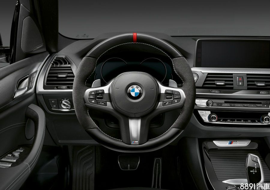 為提供更舒適的手感,方向盤套件以真皮與麂皮混搭縫製,並以飾板妝點多功能按鍵,搭配十字繡線與紅色賽車條紋,營造更濃郁的競技味,此外,X3、X4還提供碳纖維換檔撥片,方向盤也可選配全碳纖維或全真皮打造。