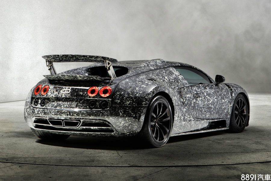 Mansory並沒有大舉改裝Veyron,僅在部份細節錦上添花,外觀依客製化需求施以大理石紋塗裝,碳纖維前保桿則嵌上更具侵略造型的進氣壩,並針對擋風玻璃、LED日行燈等細節重新設計,僅管外觀稱不上美型,但別忘了Veyron可是擁有破千匹馬力的性能猛獸。