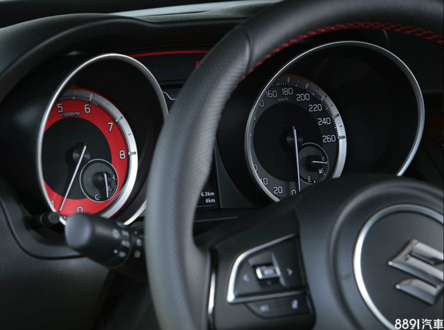 車室加入紅色飾板與車縫線,儀錶的紅色設計及金屬踏板,更增添些許視覺上的熱血感受。