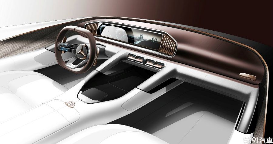 繼先前釋出預告影片後,M.Benz再度丟出一張內裝設計圖,為Vision Mercedes-Maybach Ultimate Luxury概念車的登場鋪路,由圖中可見,新車以大量白色真皮,搭配玫瑰金廠徽與飾條,並有Maybach銘牌,而寬幅數位顯示幕,以及極簡設計,則營造濃厚的科技感。